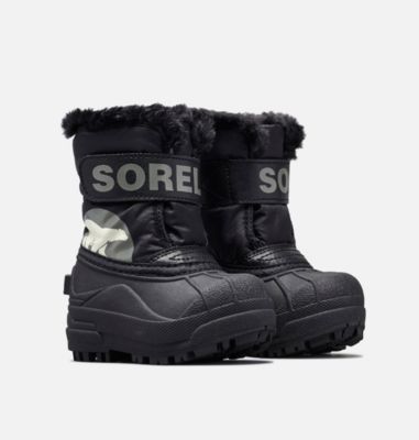 This burly little boot is aptly named. Thanks to its Velcro closure system, the Commander is the quickest and easiest rubber shell boot for little explorers to wear in winter. Synthetic upper with 200 grams of insulation, soft fleece lining and enhanced traction outsole.