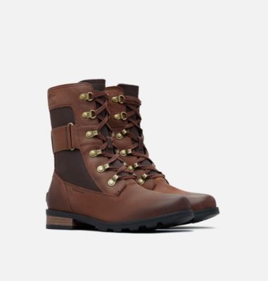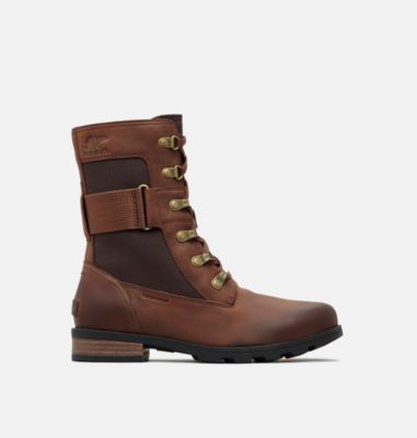 RAINY-DAY GO-TO Your rainy-season go-to, this weather-ready boot offers edgy style in a wear-all-day design. Featuring waterproof full-grain leather and coated canvas upper with seam-sealed construction, this boot delivers protection when you need it. The sleek, goes-with-anything design includes a sturdy block heel, while the buckle detail and brass hardware lend a city edge.